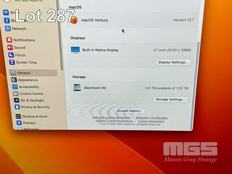 APPLE iMAC (A1419), CORE i5 7500 (7TH GEN) @ 3.4GHz, 8GB DDR4 RAM, 1TB FUSION DRIVE, BUILT-IN 27" RETINA 5K DISPLAY (5120x2880), 4GB RADEON PRO 570 VIDEO, Wi-Fi, BLUETOOTH, MAC OS 13 INSTALLED, KEYBOARD & MOUSE S/N:C02VR0LFJ1GN