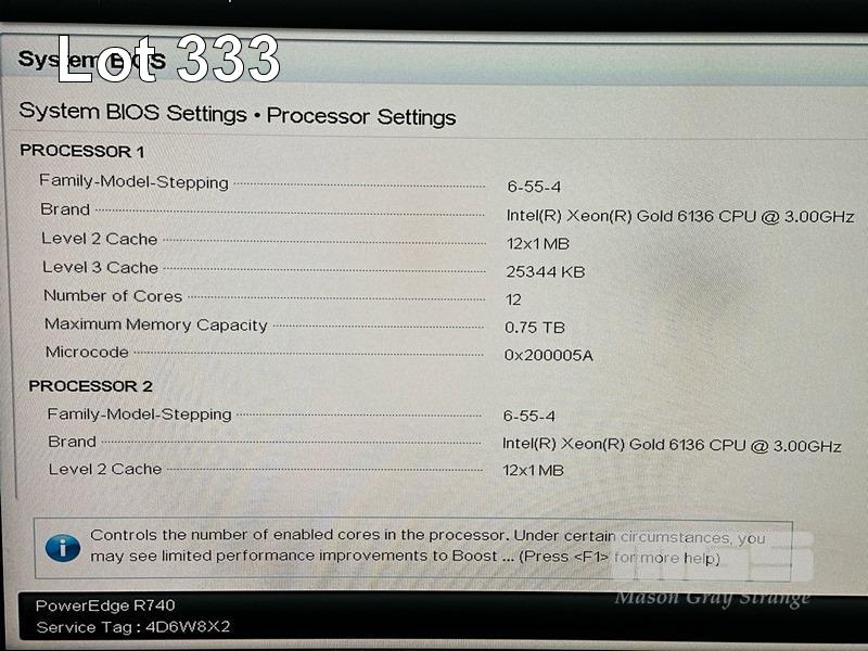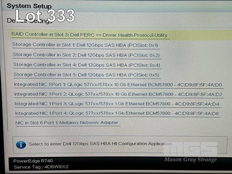 RACKMOUNT SERVER, DELL EMC POWEREDGE R740, 2U, 2 x XEON GOLD 6136 @ 3GHz, 384GB ECC DDR4 RAM, 2 x 300GB SAS (12Gbps) HDD, 4 x DUAL PORT 12Gbps SAS CONTROLLER CARDS 02PHG9, SINGLE PORT MELLANOX CONNECTX-5 EDR VPI QSFP28 INFINIBAND ADAPTER, 2 x 750W PSU WITH RAILS (NO CABLES) S/N:4D6W8X2