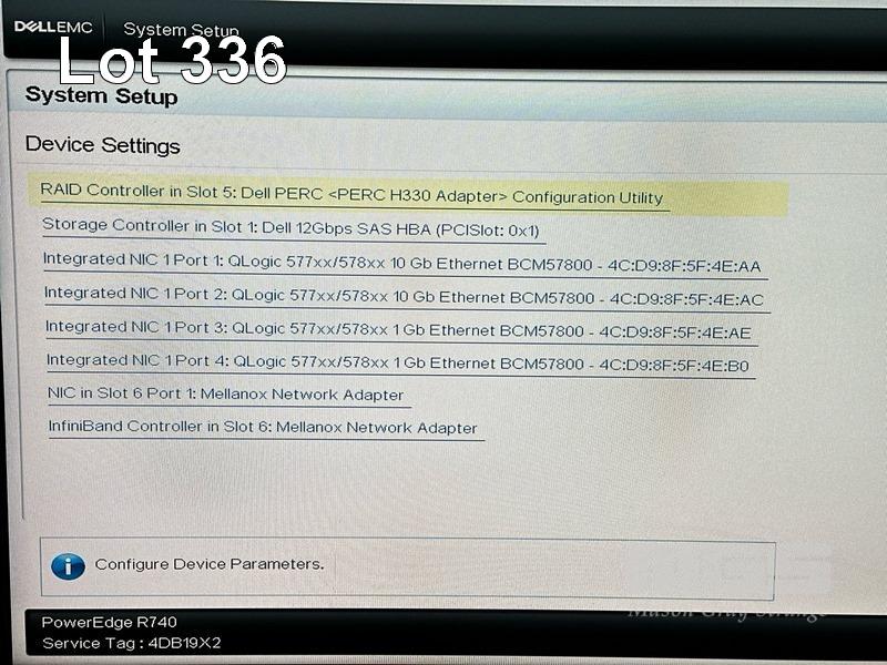 RACKMOUNT SERVER, DELL EMC POWEREDGE R740, 2U, 2 x XEON GOLD 6136 @ 3GHz, 384GB ECC DDR4 RAM, 2 x 300GB SAS (12Gbps) HDD, DUAL PORT 12Gbps SAS CONTROLLER CARD 02PHG9, SINGLE PORT MELLANOX CONNECTX-5 EDR VPI QSFP28 INFINIBAND ADAPTER, 2 x 750W PSU WITH RAILS (NO CABLES) S/N:4DB19X2
