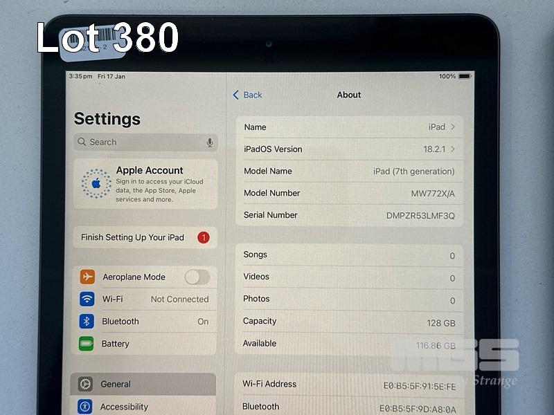 APPLE iPAD 7TH GEN, 128GB, Wi-Fi, SPACE GREY, MODEL MW772X/A, A2197 WITH COVER, CABLE & CHARGER S/N:DMPZR53LMF3Q