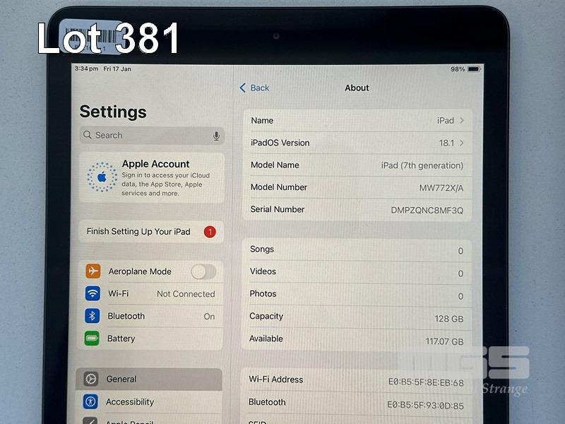 APPLE iPAD 7TH GEN, 128GB, Wi-Fi, SPACE GREY, MODEL MW772X/A, A2197 WITH COVER, CABLE & CHARGER S/N:DMPZQNC8MF3Q