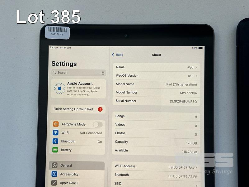 APPLE iPAD 7TH GEN, 128GB, Wi-Fi, SPACE GREY, MODEL MW772X/A, A2197 WITH COVER, CABLE & CHARGER S/N:DMPZR4BUMF3Q