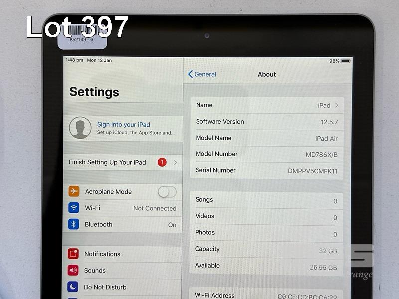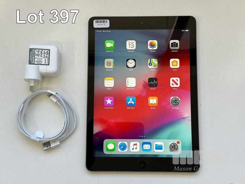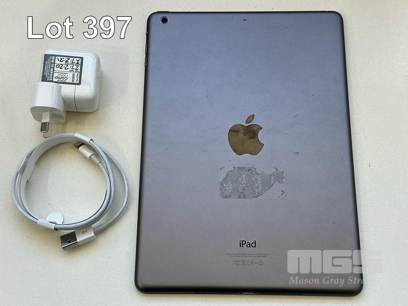 APPLE iPAD AIR, 32GB, Wi-Fi, SPACE GREY, MODEL MD786X/B, A1474 WITH CABLE & CHARGER S/N:DMPPV5CMFK11