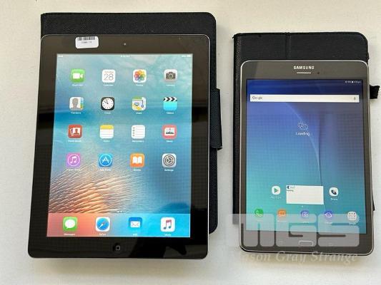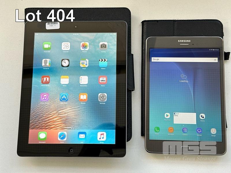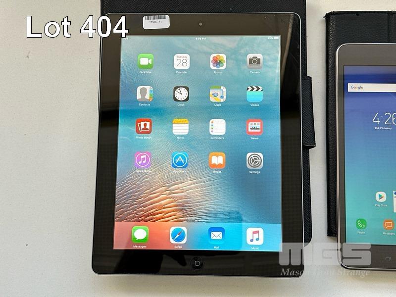 APPLE iPAD 2, 32GB, Wi-Fi. MODEL A1395 SAMSUNG GALAXY TAB A, 16GB, MODEL SM-T355Y (NO CABLES, NO CHARGERS) S/N:DLXGP21SDFHY
