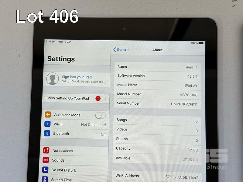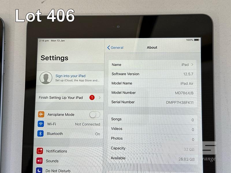 4 x APPLE iPAD AIR, 32GB, Wi-Fi, SPACE GREY, MODEL MD786X/B, A1474 (NOTE: 3 x SWOLLEN BATTERIES, 1 x DEAD) (NO CABLES, NO CHARGERS) S/N:DMPP71VAFK11, DMPP7H38FK11, DMPP7KV7FK11, DMPP7CF4FK11