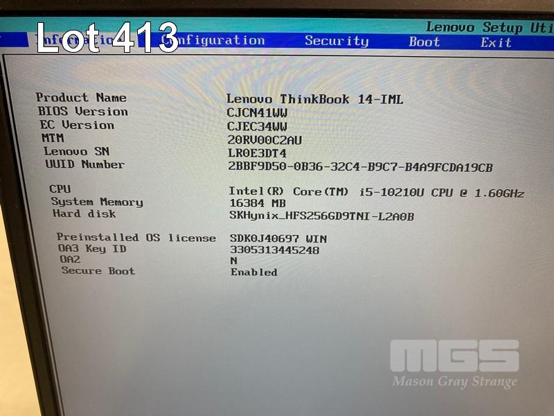 LAPTOP, LENOVO THINKBOOK 14-IML, TYPE 20RV, CORE i5 10210U (10TH GEN) @ 1.6GHz, 16GB DDR4 RAM, 256GB NVMe M.2 SSD, 14" WIDESCREEN (1920x1080), INTEL UHD GRAPHICS, Wi-Fi, BLUETOOTH, WINDOWS 11 PRO INSTALLED & POWER SUPPLY S/N:LR0E3DT4