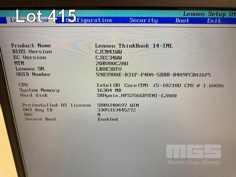 LAPTOP, LENOVO THINKBOOK 14-IML, TYPE 20RV, CORE i5 10210U (10TH GEN) @ 1.6GHz, 16GB DDR4 RAM, 256GB NVMe M.2 SSD, 14" WIDESCREEN (1920x1080), INTEL UHD GRAPHICS, Wi-Fi, BLUETOOTH, WINDOWS 11 PRO INSTALLED & POWER SUPPLY S/N:LR0E3DTV
