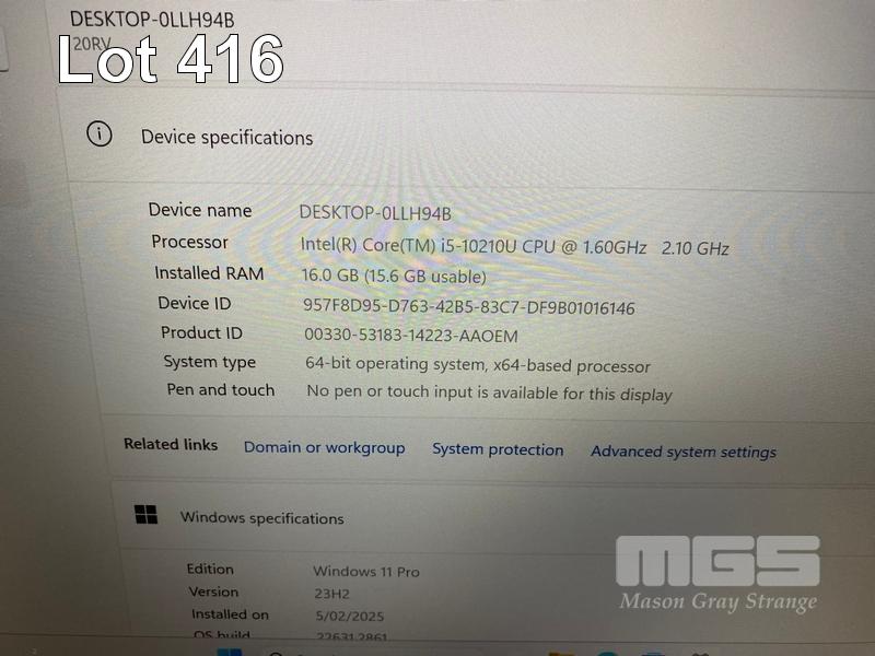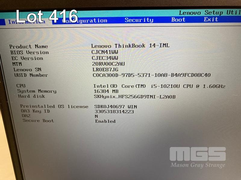 LAPTOP, LENOVO THINKBOOK 14-IML, TYPE 20RV, CORE i5 10210U (10TH GEN) @ 1.6GHz, 16GB DDR4 RAM, 256GB NVMe M.2 SSD, 14" WIDESCREEN (1920x1080), INTEL UHD GRAPHICS, Wi-Fi, BLUETOOTH, WINDOWS 11 PRO INSTALLED & POWER SUPPLY S/N:LR0E87JG