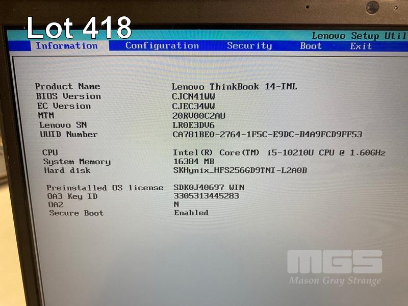 LAPTOP, LENOVO THINKBOOK 14-IML, TYPE 20RV, CORE i5 10210U (10TH GEN) @ 1.6GHz, 16GB DDR4 RAM, 256GB NVMe M.2 SSD, 14" WIDESCREEN (1920x1080), INTEL UHD GRAPHICS, Wi-Fi, BLUETOOTH, WINDOWS 11 PRO INSTALLED & POWER SUPPLY S/N:LR0E3DV6