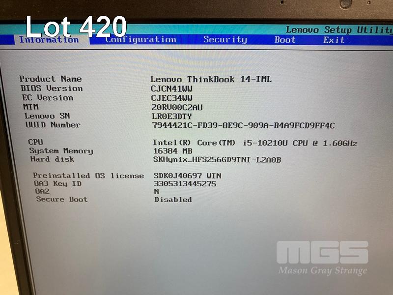LAPTOP, LENOVO THINKBOOK 14-IML, TYPE 20RV, CORE i5 10210U (10TH GEN) @ 1.6GHz, 16GB DDR4 RAM, 256GB NVMe M.2 SSD, 14" WIDESCREEN (1920x1080), INTEL UHD GRAPHICS, Wi-Fi, BLUETOOTH, WINDOWS 11 PRO INSTALLED & POWER SUPPLY S/N:LR0E3DTY