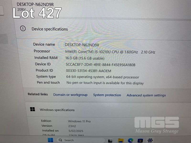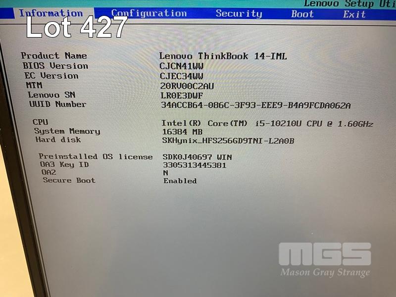 LAPTOP, LENOVO THINKBOOK 14-IML, TYPE 20RV, CORE i5 10210U (10TH GEN) @ 1.6GHz, 16GB DDR4 RAM, 256GB NVMe M.2 SSD, 14" WIDESCREEN (1920x1080), INTEL UHD GRAPHICS, Wi-Fi, BLUETOOTH, WINDOWS 11 PRO INSTALLED & POWER SUPPLY (NOTE: MISSING RUBBER STRIP UNDERNEATH, MINOR DAMAGE TO CASING, MINOR MARKS & SPOTS ON SCREEN) S/N:LR0E3DWF