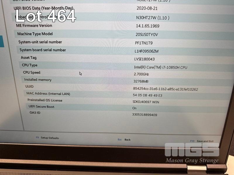 LAPTOP, LENOVO THINKPAD P15 GEN 1 MOBILE WORKSTATION, TYPE 20SU, CORE i7 10850H (10TH GEN) @ 2.7GHz, 32GB DDR4 RAM, 1TB NVMe M.2 SSD, 15.6" WIDESCREEN (1920x1080), 4GB NVIDIA QUADRO T2000 VIDEO, Wi-Fi, BLUETOOTH, WINDOWS 11 PRO INSTALLED & POWER SUPPLY S/N:PF1TN1T9