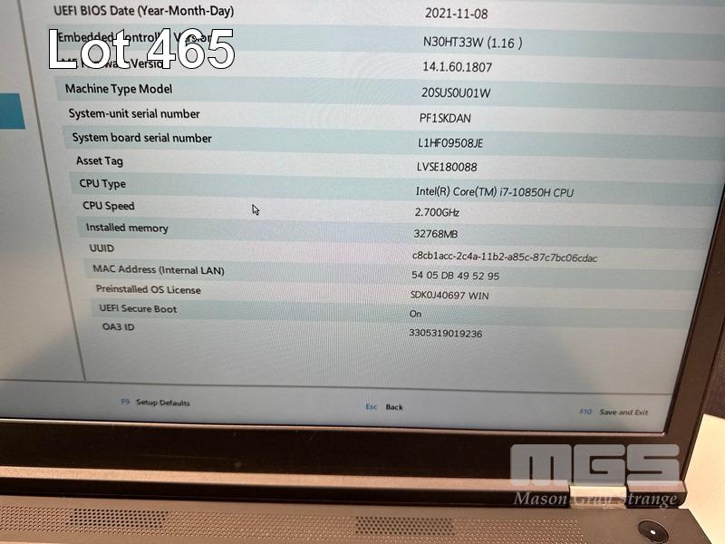 LAPTOP, LENOVO THINKPAD P15 GEN 1 MOBILE WORKSTATION, TYPE 20SU, CORE i7 10850H (10TH GEN) @ 2.7GHz, 32GB DDR4 RAM, 512GB NVMe M.2 SSD, 15.6" WIDESCREEN (1920x1080), 4GB NVIDIA QUADRO T2000 VIDEO, Wi-Fi, BLUETOOTH, WINDOWS 11 PRO INSTALLED & POWER SUPPLY (NOTE: MINOR MARKS ON SCREEN) S/N:PF1SKDAN