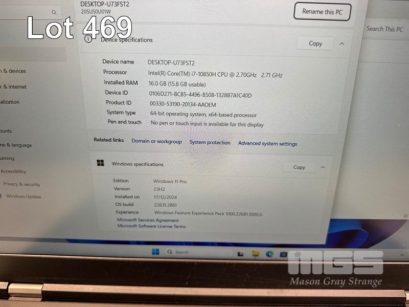 LAPTOP, LENOVO THINKPAD P15 GEN 1 MOBILE WORKSTATION, TYPE 20SU, CORE i7 10850H (10TH GEN) @ 2.7GHz, 16GB DDR4 RAM, 512GB NVMe M.2 SSD, 15.6" WIDESCREEN (1920x1080), 4GB NVIDIA QUADRO T2000 VIDEO, Wi-Fi, BLUETOOTH, WINDOWS 11 PRO INSTALLED & POWER SUPPLY (NOTE: MINOR MARKS ON SCREEN) S/N:PF1SL9KN