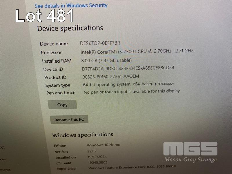 MICRO ALL-IN-ONE PC, DELL OPTIPLEX 7050 MICRO, CORE i5 7500T (7TH GEN) @ 2.7GHz, 8GB DDR4 RAM, 512GB SSD, INTEL HD VIDEO, 1 x USB-C, 5 x USB, WINDOWS 10 HOME INSTALLED WITH DELL P2417H 24" LED-BL LCD MONITOR ON ALL-IN-ONE STAND, MFS18, POWER SUPPLY (65W), KEYBOARD & MOUSE S/N:69RK6Q2