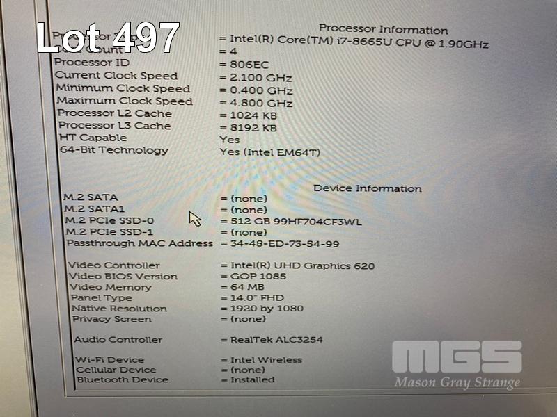LAPTOP, DELL LATITUDE 7400, CORE i7 8665U (8TH GEN) @ 1.9GHz, 16GB DDR4 RAM, 512GB NVMe M.2 SSD, 14" WIDESCREEN (1920x1080), INTEL UHD GRAPHICS 620, Wi-Fi, BLUETOOTH, WINDOWS 11 PRO INSTALLED & POWER SUPPLY S/N:6Y3T3Z2