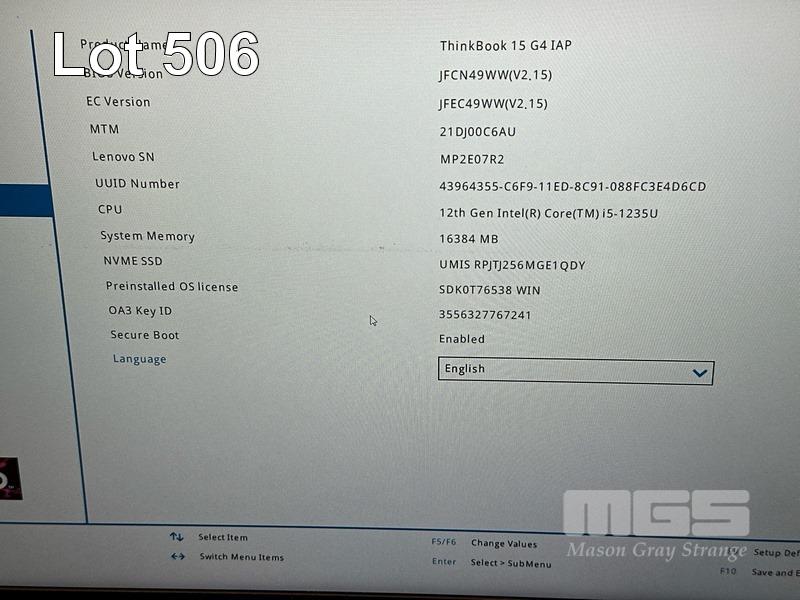 LAPTOP, LENOVO THINKBOOK 15 G4 IAP, CORE i5 1235U (12TH GEN) @ 1.3GHz, 16GB RAM, 256GB NVMe M.2 SSD, 15.6" WIDESCREEN (1920x1080), INTEL IRIS Xe GRAPHICS, Wi-Fi, BLUETOOTH, WINDOWS 11 PRO INSTALLED & USB-C POWER SUPPLY (NOTE: MARKS ON SCREEN) S/N:MP2E07R2