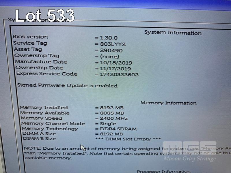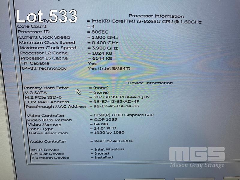 LAPTOP, DELL LATITUDE 5400, CORE i5 8265U (8TH GEN) @ 1.6GHz, 8GB DDR4 RAM, 512GB NVMe M.2 SSD, 14" WIDESCREEN (1920x1080), INTEL UHD GRAPHICS 620, Wi-Fi, BLUETOOTH, WINDOWS 11 HOME INSTALLED & POWER SUPPLY (NOTE: MINOR MARKS ON SCREEN) S/N:803LYY2