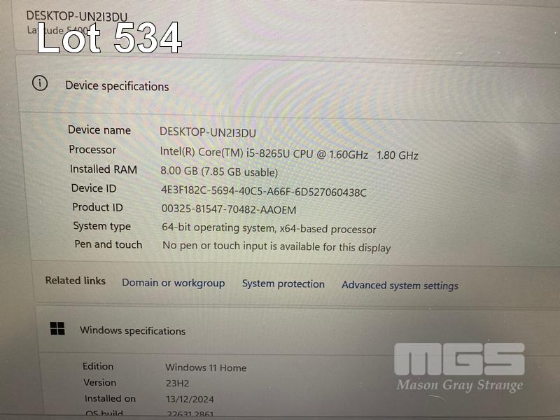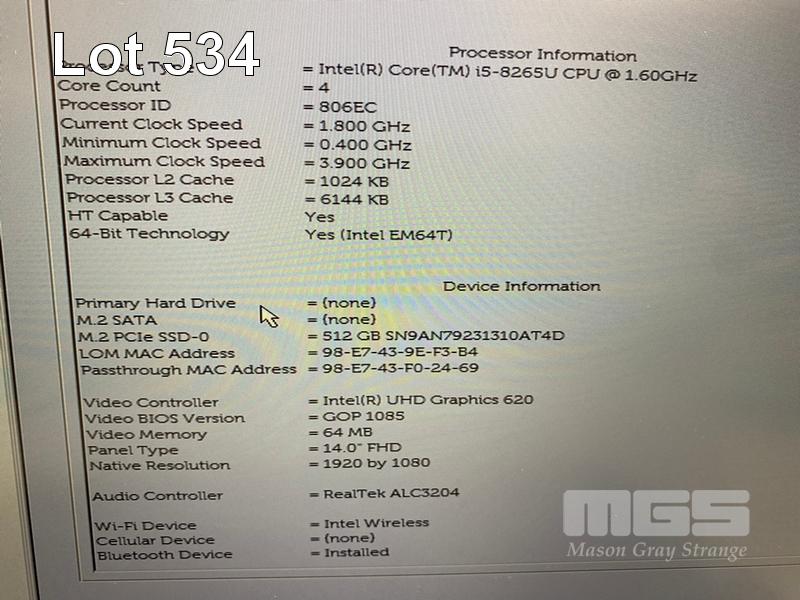 LAPTOP, DELL LATITUDE 5400, CORE i5 8265U (8TH GEN) @ 1.6GHz, 8GB DDR4 RAM, 512GB NVMe M.2 SSD, 14" WIDESCREEN (1920x1080), INTEL UHD GRAPHICS 620, Wi-Fi, BLUETOOTH, WINDOWS 11 HOME INSTALLED (NO POWER SUPPLY) (NOTE: MARKS ON SCREEN, BATTERY NOT HOLDING CHARGE) S/N:8WRV2Z2