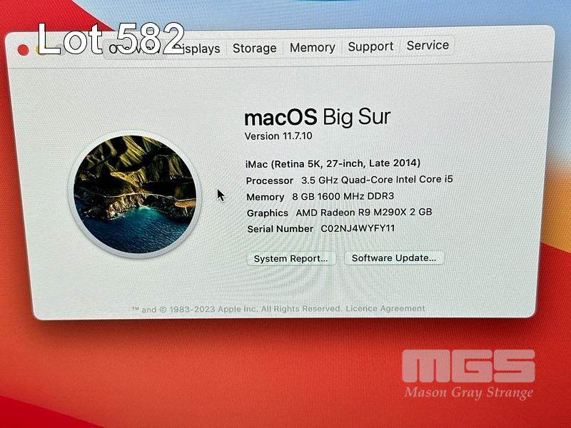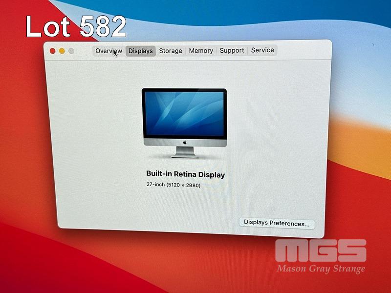 APPLE iMAC (A1419), CORE i5 4690 (4TH GEN) @ 3.5GHz, 8GB DDR3 RAM, 1TB SSD, BUILT-IN 27" RETINA DISPLAY (5120x2880), 2GB AMD RADEON R9 M290X VIDEO, Wi-Fi, BLUETOOTH, MAC OS 11.7 INSTALLED (NO KEYBOARD, NO MOUSE) S/N:C02NJ4WYFY11