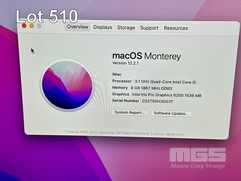 APPLE iMAC (A1418), CORE i5 5675R (5TH GEN) @ 3.1GHz, 8GB DDR3 RAM, 1TB FUSION DRIVE, BUILT-IN 21.5" RETINA DISPLAY (4096x2304), INTEL IRIS PRO GRAPHICS 6200, Wi-Fi, BLUETOOTH, MAC OS 12 INSTALLED (NO KEYBOARD, NO MOUSE) S/N:C02T50H3GG7F