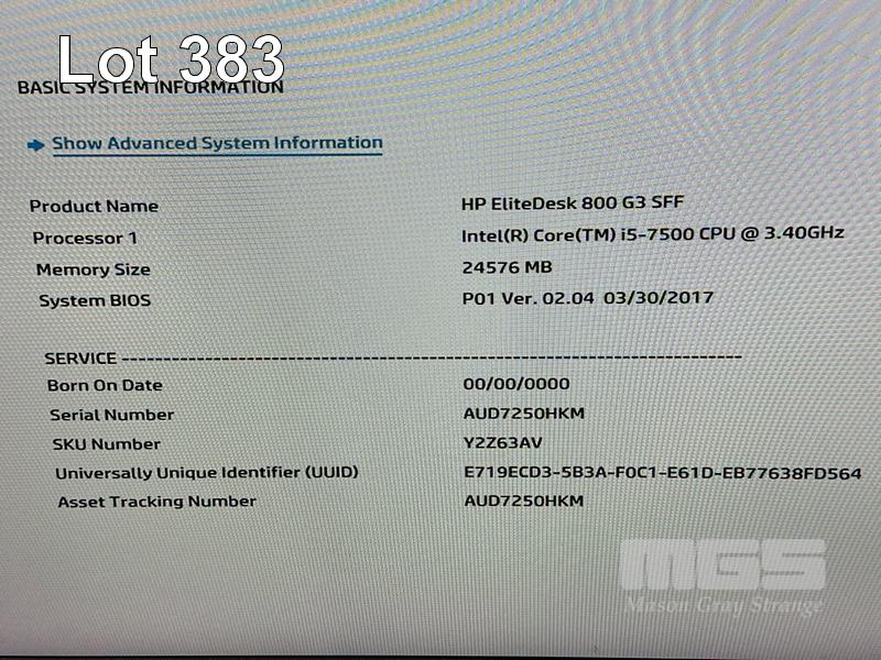 DESKTOP PC, HP ELITEDESK 800 G3 SFF, CORE i5 7500 (7TH GEN) @ 3.4GHz, 24GB DDR4 RAM, 1TB SATA HDD, DVD-RW, INTEL HD VIDEO, 10 x USB, 1 x USB-C, WINDOWS 10 PRO INSTALLED (NO KEYBOARD, NO MOUSE) S/N:AUD7250HKM