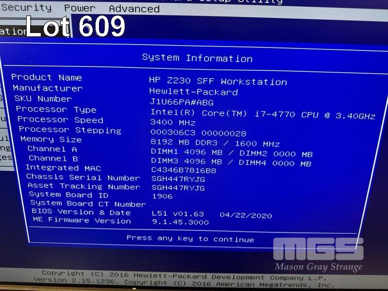 DESKTOP PC, HP Z230 SFF WORKSTATION, CORE i7 4770 (4TH GEN) @ 3.4GHz, 8GB DDR3 RAM, 512GB SSD, 3TB SATA HDD, DVD-RW, 1GB NVIDIA QUADRO K600 VIDEO, 10 x USB, WINDOWS 10 PRO INSTALLED (NO KEYBOARD, NO MOUSE) S/N:SGH447RYJG