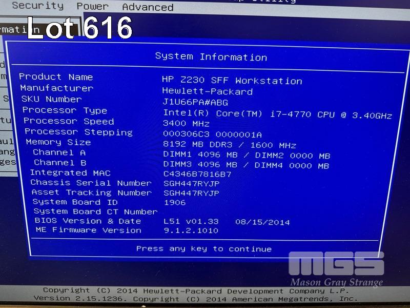 DESKTOP PC, HP Z230 SFF WORKSTATION, CORE i7 4770 (4TH GEN) @ 3.4GHz, 8GB DDR3 RAM, 1TB SATA HDD, DVD-RW, 1GB NVIDIA QUADRO K600 VIDEO, 10 x USB, WINDOWS 10 PRO INSTALLED (NO KEYBOARD, NO MOUSE) S/N:SGH447RYJP