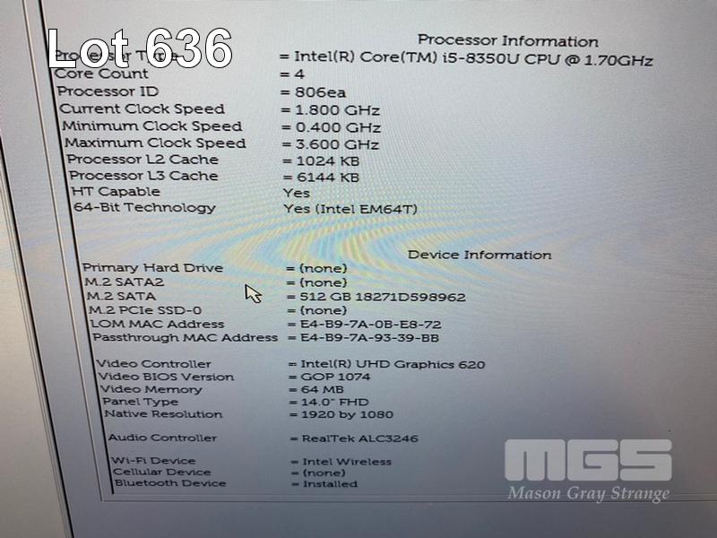 LAPTOP, DELL LATITUDE 5490, CORE i5 8350U (8TH GEN) @ 1.7GHz, 16GB DDR4 RAM, 512GB M.2 SSD, 14" WIDESCREEN (1920x1080), INTEL UHD GRAPHICS 620, Wi-Fi, BLUETOOTH, WINDOWS 11 HOME INSTALLED (NO POWER SUPPLY) (NOTE: BATTERY NOT HOLDING CHARGE, MARKS ON SCREEN) S/N:86D4RQ2