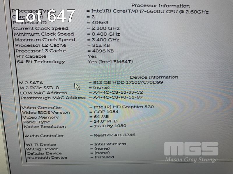 LAPTOP, DELL LATITUDE 7480, CORE i7 6600U (6TH GEN) @ 2.6GHz, 16GB DDR4 RAM, 512GB M.2 SSD, 14" WIDESCREEN (1920x1080), INTEL HD GRAPHICS 520, Wi-Fi, BLUETOOTH, WINDOWS 10 HOME INSTALLED & POWER SUPPLY S/N:G1X2MH2