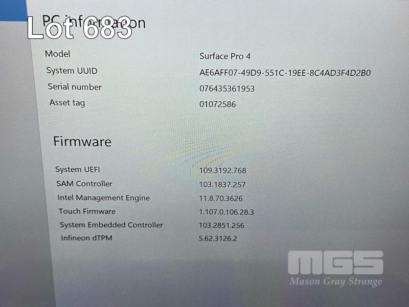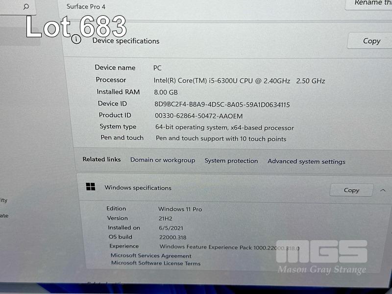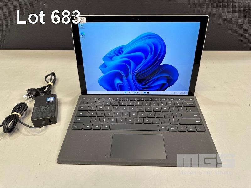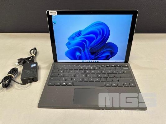 TABLET PC, MICROSOFT SURFACE PRO 4, MODEL 1724, CORE i5 6300U (6TH GEN) @ 2.4GHz, 8GB RAM, 256GB SSD, 12.3" TOUCHSCREEN (2736x1824), INTEL HD GRAPHICS 520, Wi-Fi, BLUETOOTH, WINDOWS 11 PRO INSTALLED, KEYBOARD TYPE COVER & POWER SUPPLY S/N:076435361953