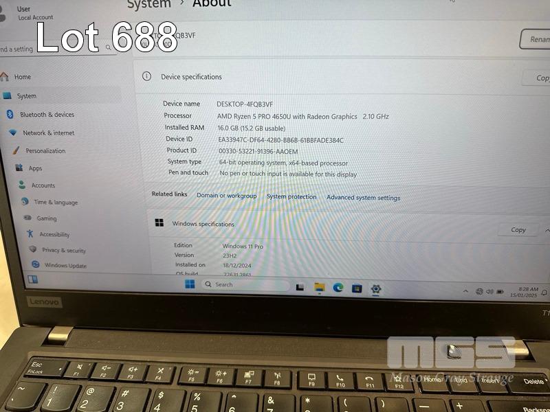 LAPTOP, LENOVO THINKPAD T14 Gen1, TYPE 20UE, AMD RYZEN 5 PRO 4650U @ 2.1GHz, 16GB DDR4 RAM, 512GB NVMe M.2 SSD, 14" WIDESCREEN (1920x1080), Wi-Fi, BLUETOOTH, WINDOWS 11 PRO INSTALLED (NO USB-C POWER SUPPLY) (NOTE: MARKS & SCRATCH ON SCREEN) S/N:PF240KF1
