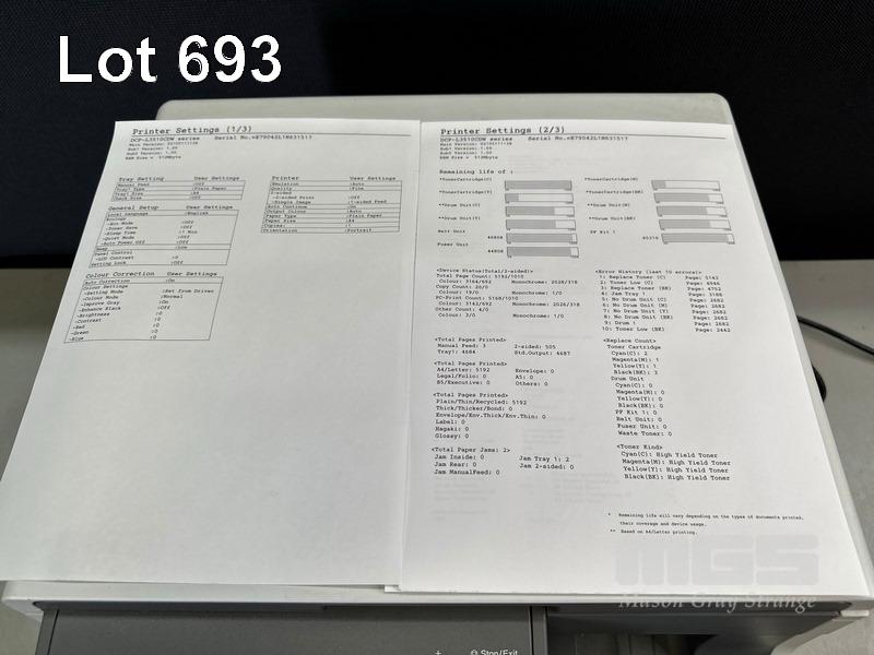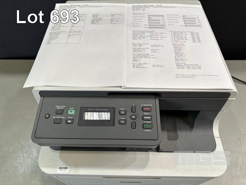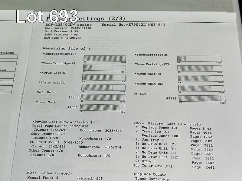 PRINTER, BROTHER DCP-L3510CDW MFC COLOUR LASER, USB, NETWORK, 3,164 COLOUR & 2,026 B&W PAGES (TEST PAGE ATTACHED) S/N:E79042L1N631517
