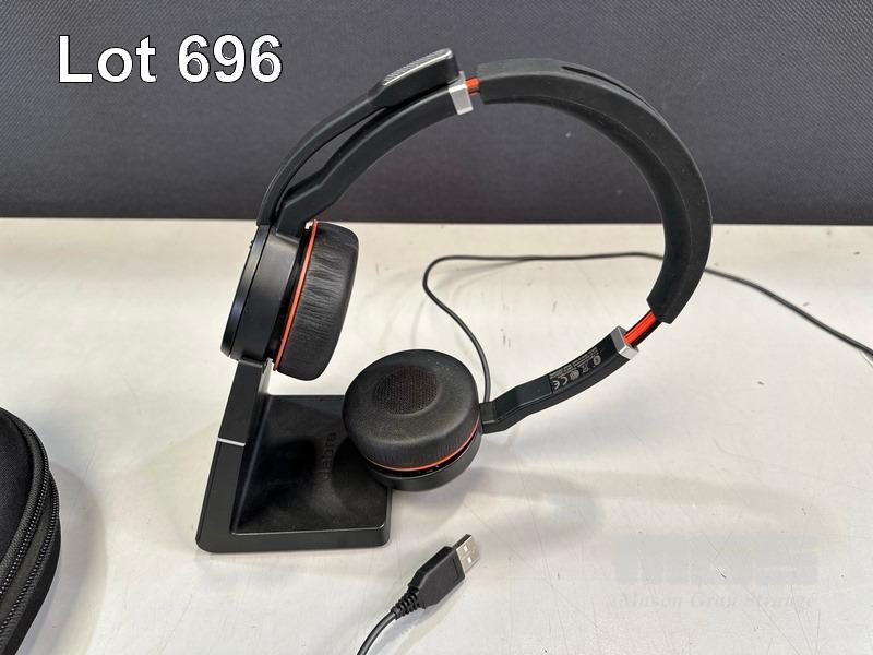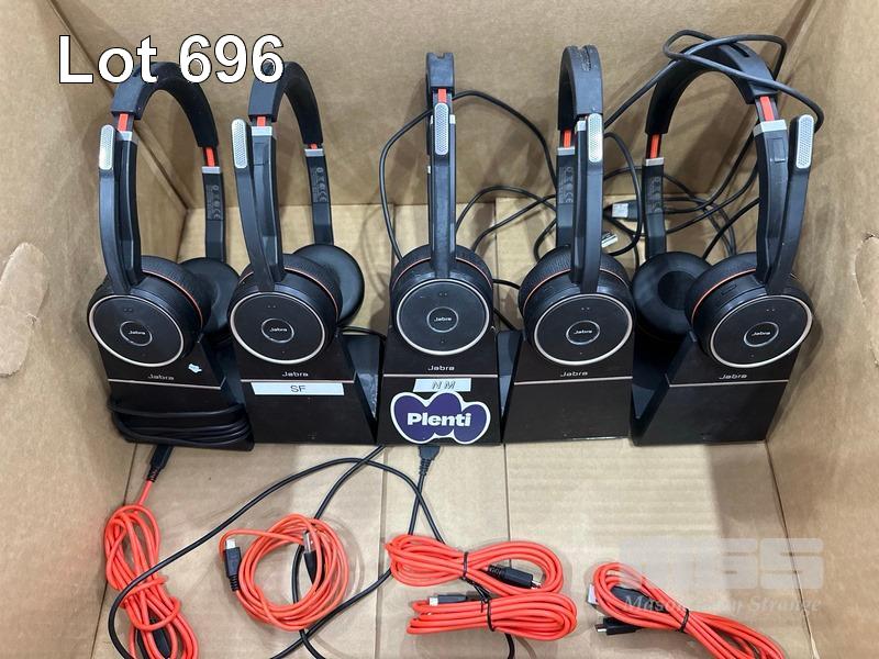 6 x JABRA EVOLVE 75 SE WIRELESS HEADSETS, HSC040Wa WITH CHARGING STANDS, CABLES, BLUETOOTH RECEIVERS & CASES