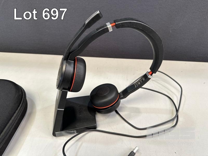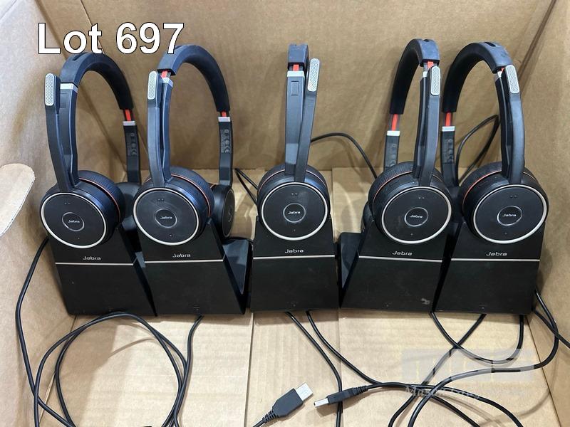 6 x JABRA EVOLVE 75 SE WIRELESS HEADSETS, HSC040Wa WITH CHARGING STANDS & CASES