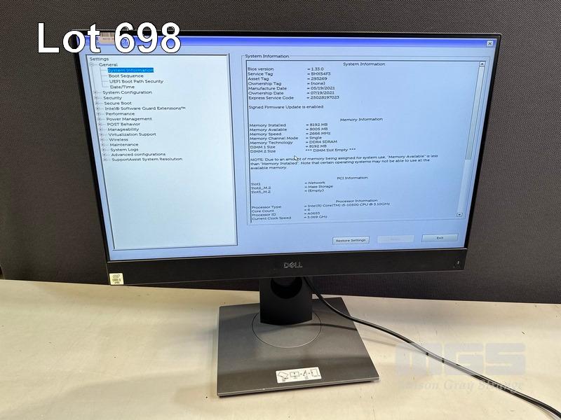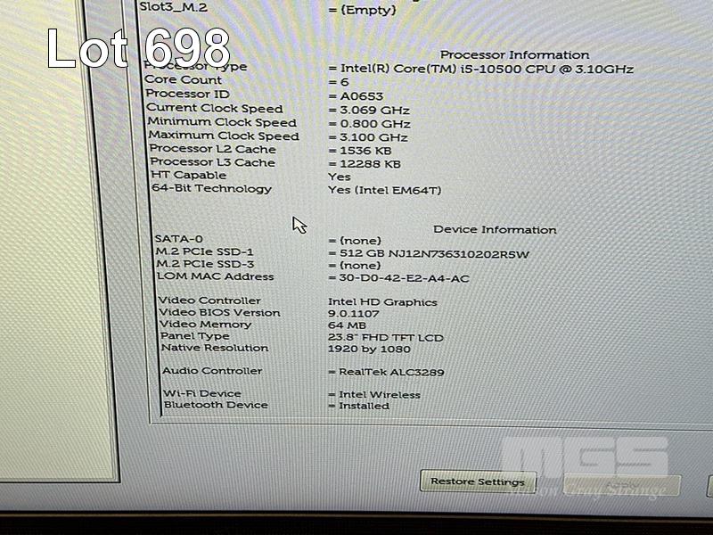 ALL-IN-ONE PC, DELL OPTIPLEX 7480, CORE i5 10500 (10TH GEN) @ 3.1GHz, 8GB DDR4 RAM, 512GB NVMe M.2 SSD, INBUILT 23.8" FHD WIDESCREEN (1920x1080) (NO KEYBOARD, NO MOUSE) (NOTE: SCREEN FLICKERING, HARDWARE FAULT - UNABLE TO INSTALL WINDOWS) S/N:BHX54F3