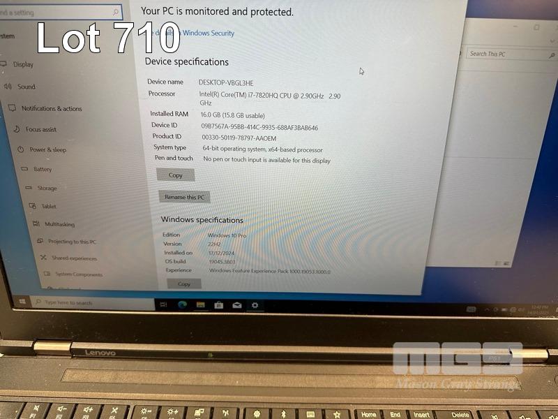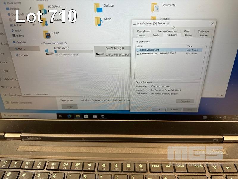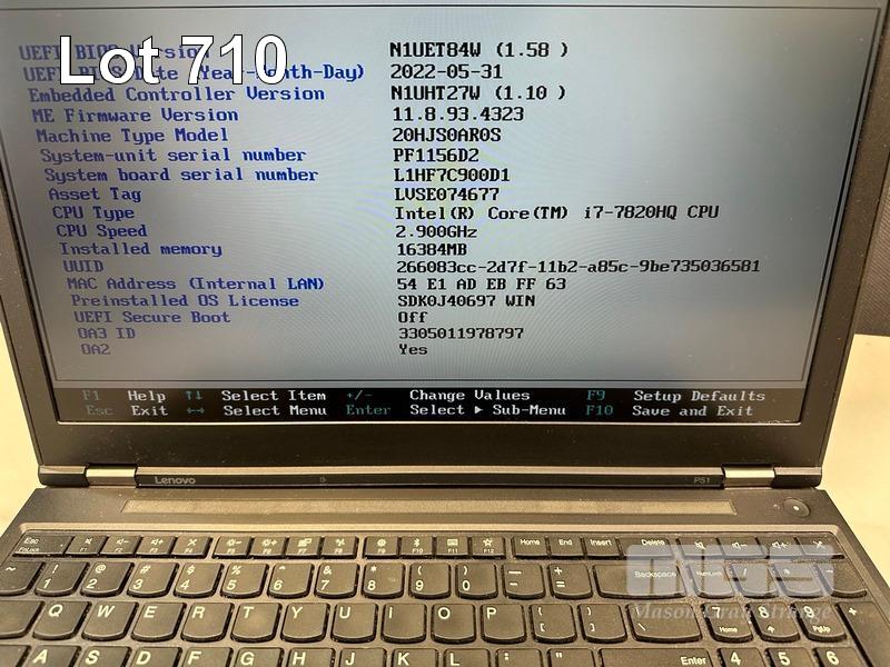 LAPTOP, LENOVO THINKPAD P51 MOBILE WORKSTATION, TYPE 20HJ, CORE i7 7820HQ (7TH GEN) @ 2.9GHz, 16GB DDR4 RAM, 512GB NVMe M.2 SSD, 250GB SSD, 15.6" WIDESCREEN (1920x1080), 4GB NVIDIA QUADRO M2200 VIDEO, Wi-Fi, BLUETOOTH, WINDOWS 10 PRO INSTALLED (NO POWER SUPPLY) (NOTE: MARKS ON SCREEN) S/N:PF1156D2