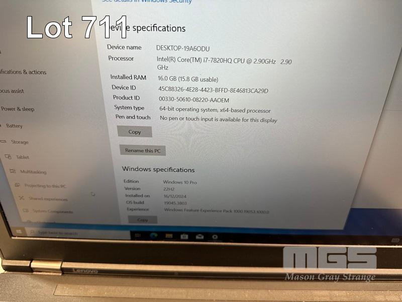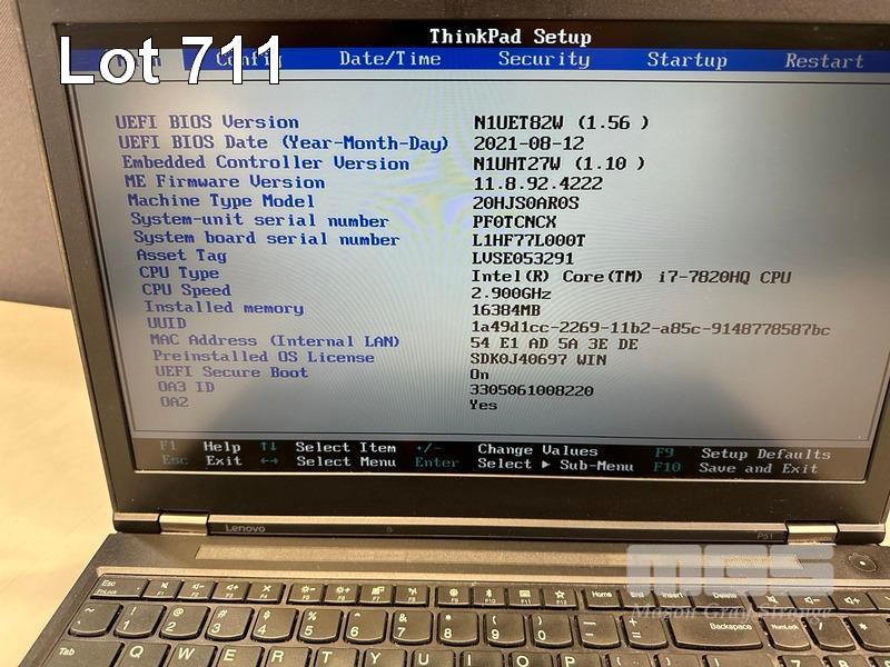 LAPTOP, LENOVO THINKPAD P51 MOBILE WORKSTATION, TYPE 20HJ, CORE i7 7820HQ (7TH GEN) @ 2.9GHz, 16GB DDR4 RAM, 256GB NVMe M.2 SSD, 15.6" WIDESCREEN (1920x1080), 4GB NVIDIA QUADRO M2200 VIDEO, Wi-Fi, BLUETOOTH, WINDOWS 10 PRO INSTALLED (NO POWER SUPPLY) (NOTE: MINOR MARKS ON SCREEN) S/N:PF0TCNCX
