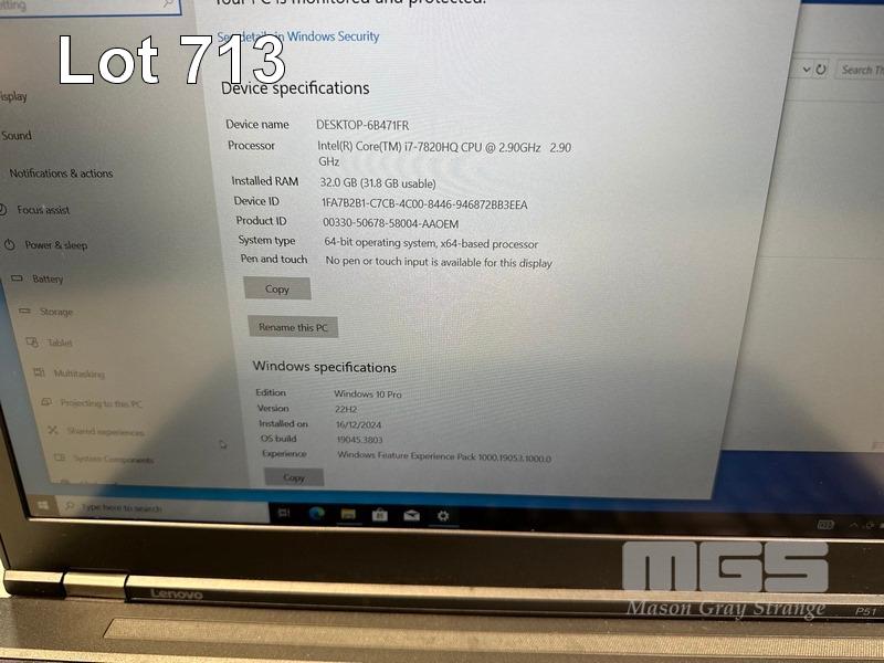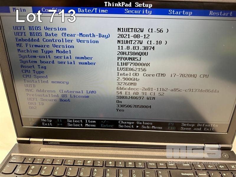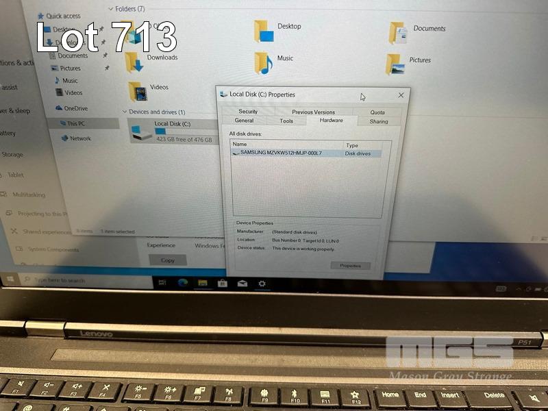 LAPTOP, LENOVO THINKPAD P51 MOBILE WORKSTATION, TYPE 20HJ, CORE i7 7820HQ (7TH GEN) @ 2.9GHz, 32GB DDR4 RAM, 512GB NVMe M.2 SSD, 15.6" WIDESCREEN (1920x1080), 4GB NVIDIA QUADRO M2200 VIDEO, Wi-Fi, BLUETOOTH, WINDOWS 10 PRO INSTALLED (NO POWER SUPPLY) (NOTE: CRACK LINE ON CASING, MARKS ON SCREEN) S/N:PF0VNR5J