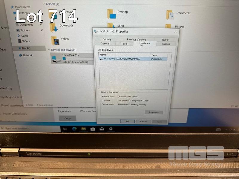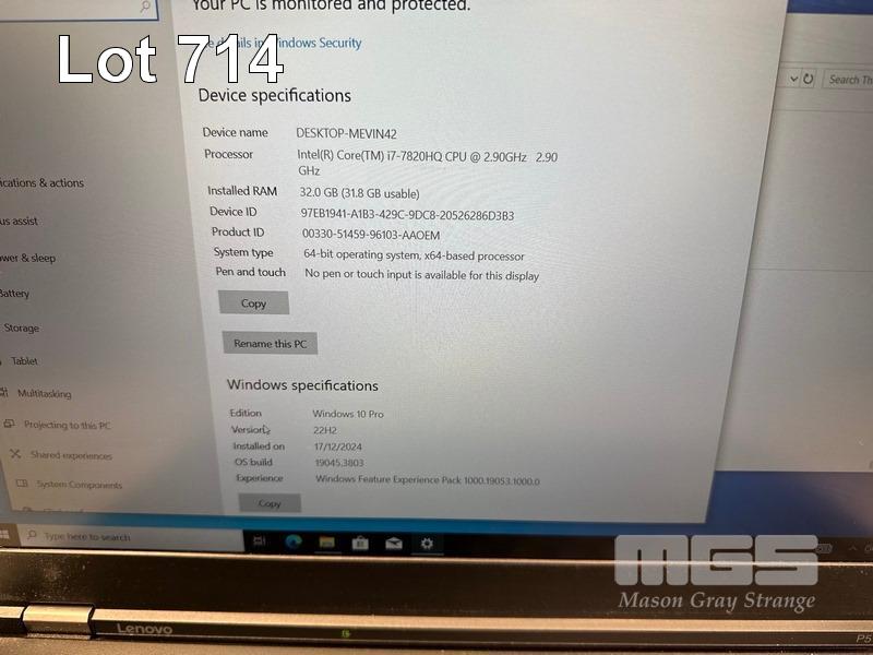LAPTOP, LENOVO THINKPAD P51 MOBILE WORKSTATION, TYPE 20HJ, CORE i7 7820HQ (7TH GEN) @ 2.9GHz, 32GB DDR4 RAM, 512GB NVMe M.2 SSD, 15.6" WIDESCREEN (1920x1080), 4GB NVIDIA QUADRO M2200 VIDEO, Wi-Fi, BLUETOOTH, WINDOWS 10 PRO INSTALLED (NO POWER SUPPLY) (NOTE: KEYBOARD FAULT, MARKS ON SCREEN, TOUCHPAD WORN) S/N:PF155U8B