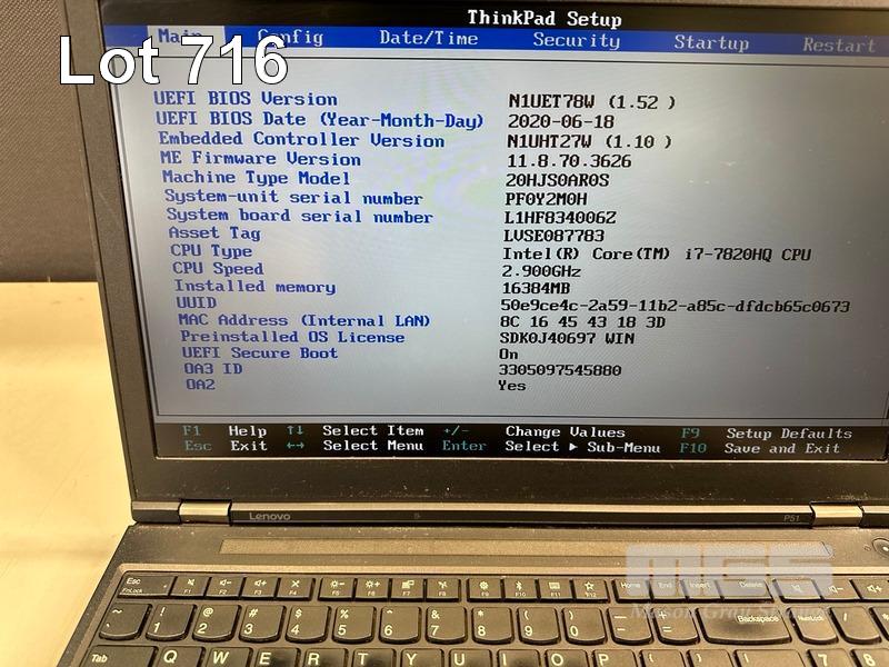 LAPTOP, LENOVO THINKPAD P51 MOBILE WORKSTATION, TYPE 20HJ, CORE i7 7820HQ (7TH GEN) @ 2.9GHz, 16GB DDR4 RAM, 512GB NVMe M.2 SSD, 15.6" WIDESCREEN (1920x1080), 4GB NVIDIA QUADRO M2200 VIDEO, Wi-Fi, BLUETOOTH, WINDOWS 10 PRO INSTALLED (NO POWER SUPPLY) (NOTE: MARKS, SPOTS & LINE ON SCREEN, DAMAGED USB PORT, SCRATCHES ON CASING, KEYBOARD / TOUCHPAD FAULT) S/N:PF0Y2M0H