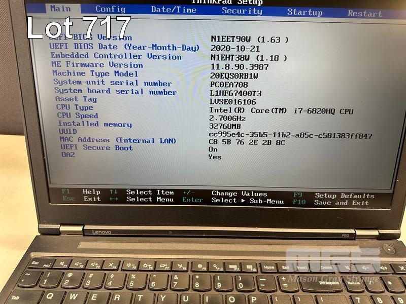 LAPTOP, LENOVO THINKPAD P50 MOBILE WORKSTATION, TYPE 20EQ, CORE i7 6820HQ (6TH GEN) @ 2.7GHz, 32GB DDR4 RAM, 512GB M.2 SSD, 1TB SSD, 15.6" WIDESCREEN (1920x1080), 4GB NVIDIA QUADRO M2000M VIDEO, Wi-Fi, BLUETOOTH, WINDOWS 10 PRO INSTALLED (NO POWER SUPPLY) S/N:PC0EA708