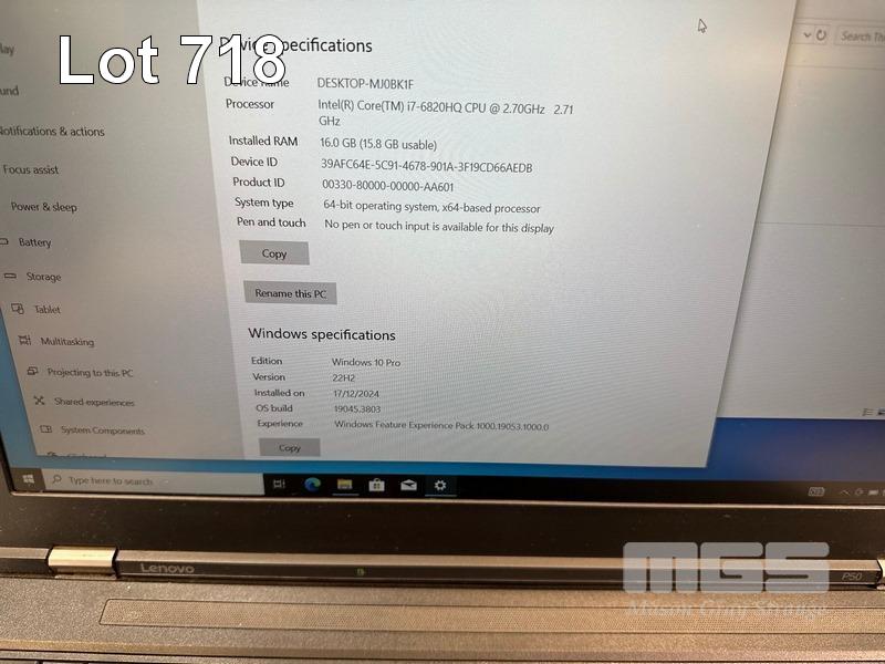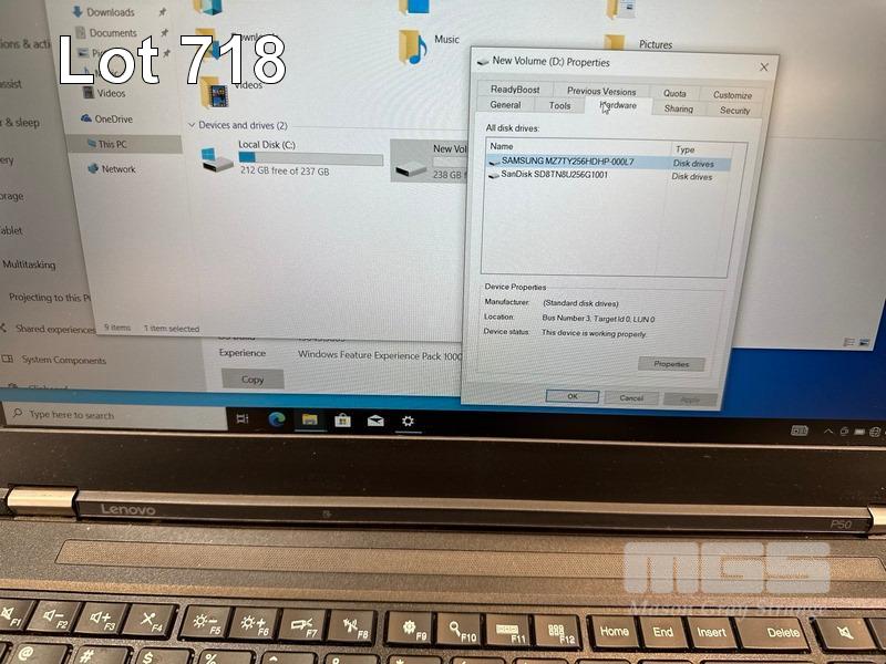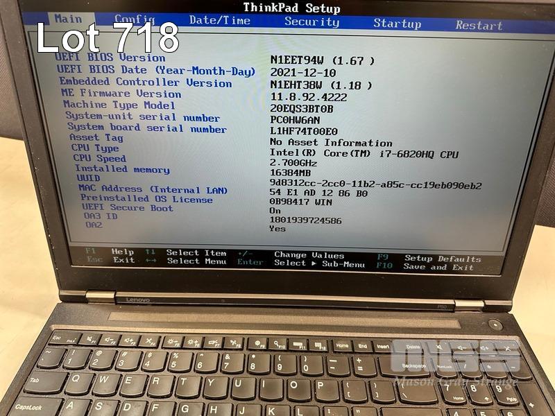 LAPTOP, LENOVO THINKPAD P50 MOBILE WORKSTATION, TYPE 20EQ, CORE i7 6820HQ (6TH GEN) @ 2.7GHz, 16GB DDR4 RAM, 2 x 256GB SSD, 15.6" WIDESCREEN (1920x1080), 4GB NVIDIA QUADRO M2000M VIDEO, Wi-Fi, BLUETOOTH, WINDOWS 10 PRO INSTALLED (NO POWER SUPPLY) (NOTE: MARKS ON SCREEN) S/N:PC0HW6AN