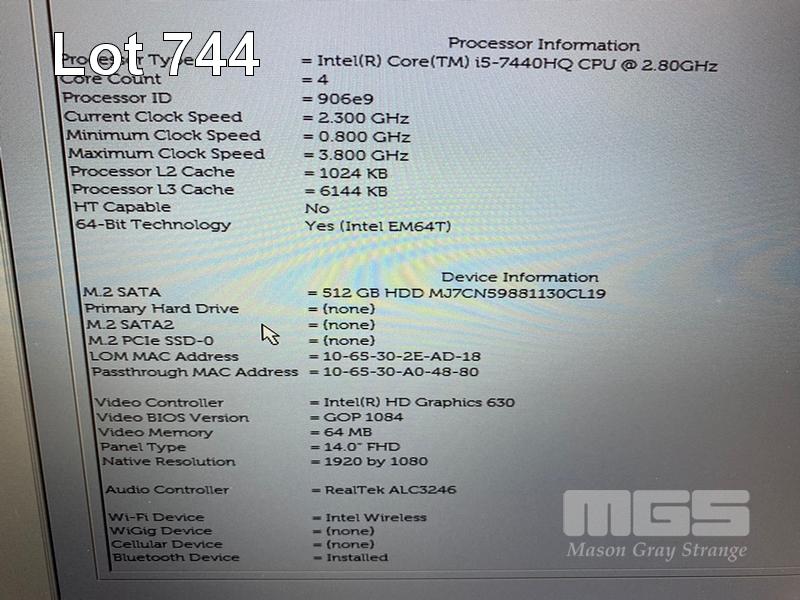 LAPTOP, DELL LATITUDE 5480, CORE i5 7440HQ (7TH GEN) @ 2.8GHz, 8GB DDR4 RAM, 512GB M.2 SSD, 14" WIDESCREEN (1920x1080), INTEL HD GRAPHICS 630, Wi-Fi, BLUETOOTH, WINDOWS 10 HOME INSTALLED & POWER SUPPLY (NOTE: MINOR MARKS ON SCREEN) S/N:GW7CPN2