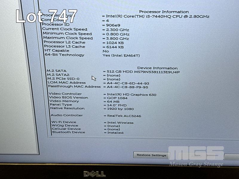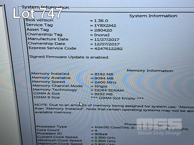 LAPTOP, DELL LATITUDE 5480, CORE i5 7440HQ (7TH GEN) @ 2.8GHz, 8GB DDR4 RAM, 512GB M.2 SSD, 14" WIDESCREEN (1920x1080), INTEL HD GRAPHICS 630, Wi-Fi, BLUETOOTH, WINDOWS 10 HOME INSTALLED (NO POWER SUPPLY) (NOTE: SMALL SCRATCH ON SCREEN, RUBBER SCREEN FRAME LOOSE, BATTERY NOT HOLDING CHARGE) S/N:1Y8X2M2