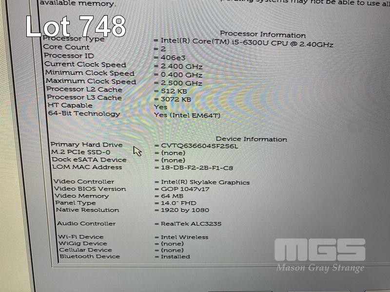 LAPTOP, DELL LATITUDE E7470, CORE i5 6300U (6TH GEN) @ 2.4GHz, 8GB DDR4 RAM, 256GB M.2 SSD, 14" WIDESCREEN (1920x1080), INTEL HD GRAPHICS 520, Wi-Fi, BLUETOOTH, WINDOWS 10 HOME INSTALLED & POWER SUPPLY S/N:2WBWBG2