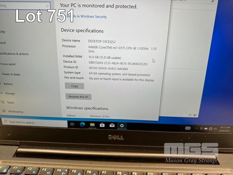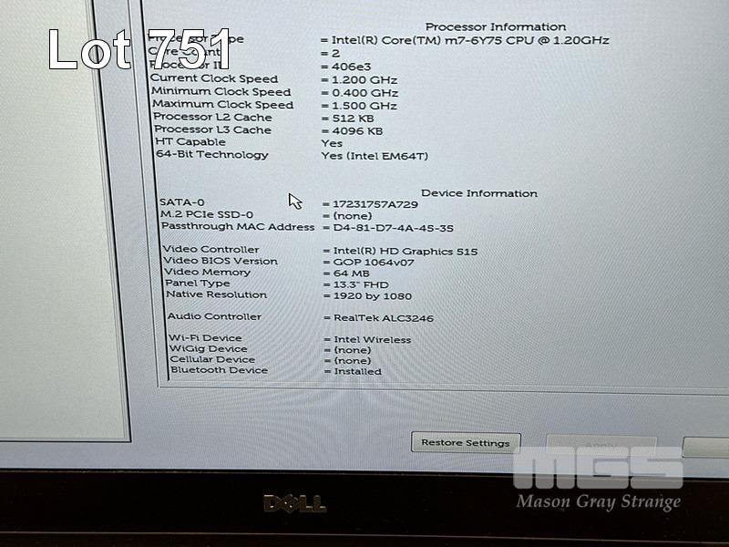 LAPTOP, DELL LATITUDE 7370, CORE m7-6Y75 (6TH GEN) @ 1.2GHz, 16GB DDR3 RAM, 512GB M.2 SSD, 13.3" WIDESCREEN (1920x1080), INTEL HD GRAPHICS 515, Wi-Fi, BLUETOOTH, WINDOWS 10 PRO INSTALLED & USB-C POWER SUPPLY S/N:FZXT6H2