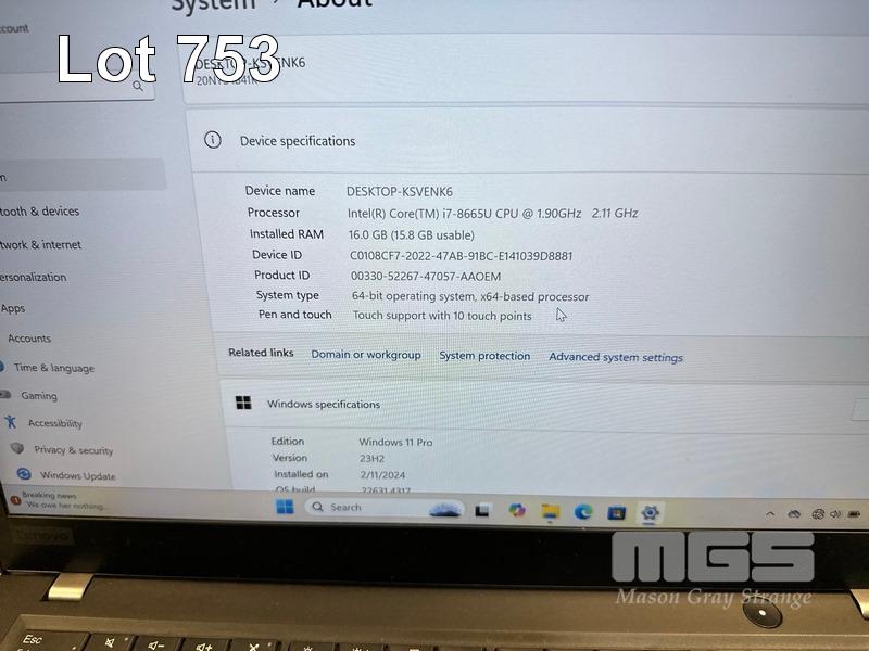 LAPTOP, LENOVO THINKPAD T490s, TYPE 20NY, CORE i7 8665U (8TH GEN) @ 1.9GHz, 16GB DDR4 RAM, 512GB NVMe M.2 SSD, 14" TOUCHSCREEN (1920x1080), INTEL HD VIDEO, Wi-Fi, BLUETOOTH, WINDOWS 11 PRO INSTALLED (NO USB-C POWER SUPPLY) (NOTE: TRACKPOINT & MOUSE BUTTONS FAULTY) S/N:PC18ZZBH