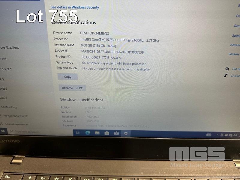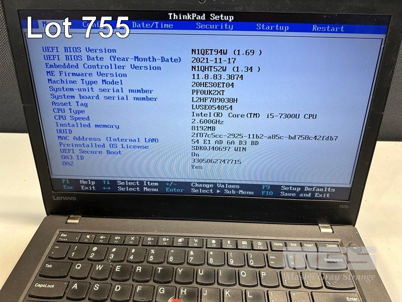 LAPTOP, LENOVO THINKPAD T470, TYPE 20HE, CORE i5 7300U (7TH GEN) @ 2.6GHz, 8GB DDR4 RAM, 256GB NVMe M.2 SSD, 14" WIDESCREEN (1366x768), INTEL HD VIDEO, Wi-Fi, BLUETOOTH, WINDOWS 10 PRO INSTALLED & POWER SUPPLY (NOTE: NO BATTERY) S/N:PF0UKZXT