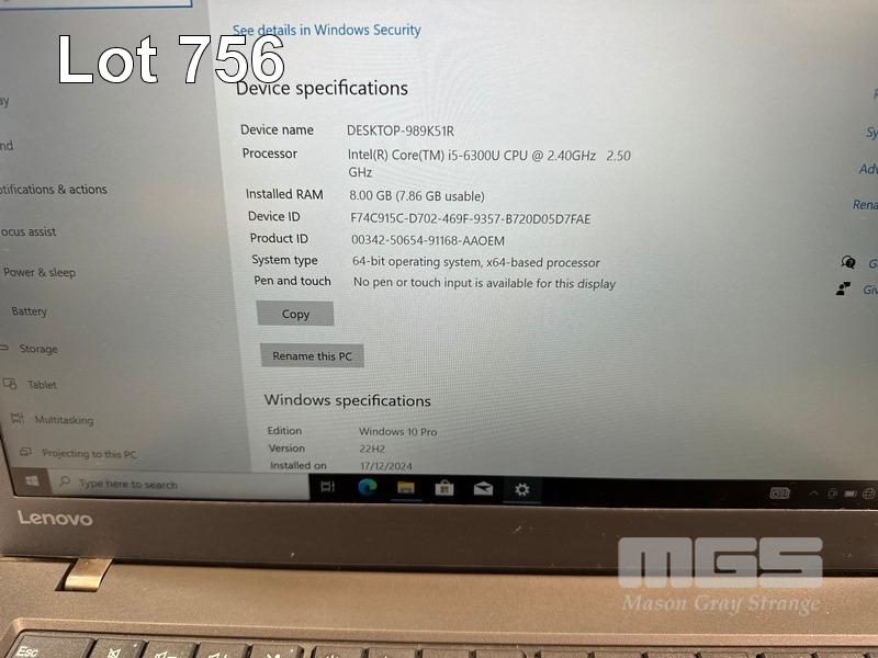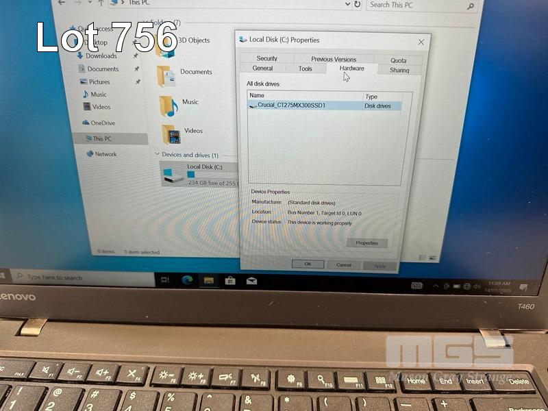 LAPTOP, LENOVO THINKPAD T460, TYPE 20FM, CORE i5 6300U (6TH GEN) @ 2.4GHz, 8GB DDR3 RAM, 275GB SSD, 14" WIDESCREEN (1920x1080), INTEL HD VIDEO, Wi-Fi, BLUETOOTH, WINDOWS 10 PRO INSTALLED & POWER SUPPLY S/N:PC0GCD38